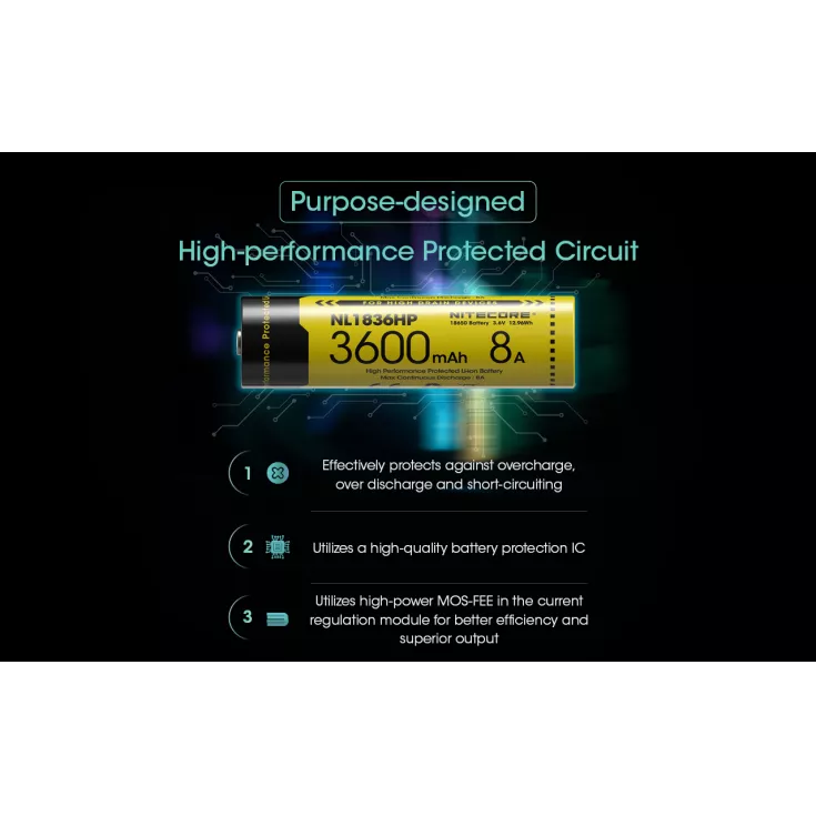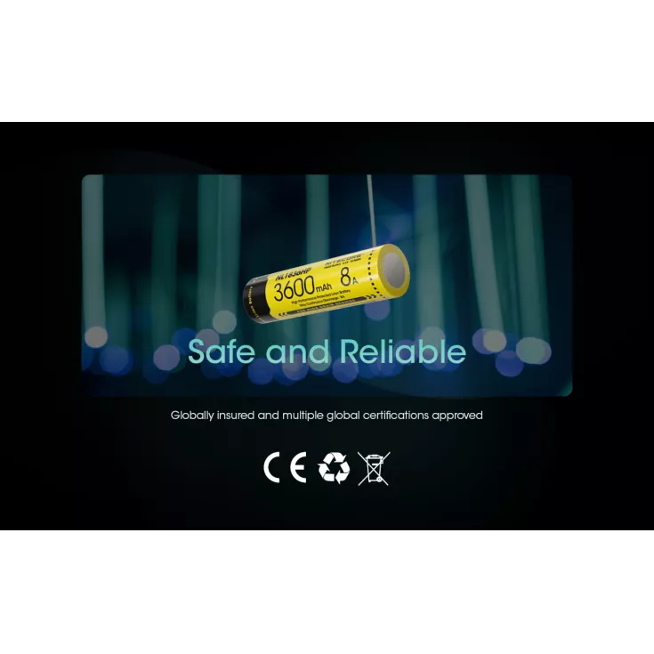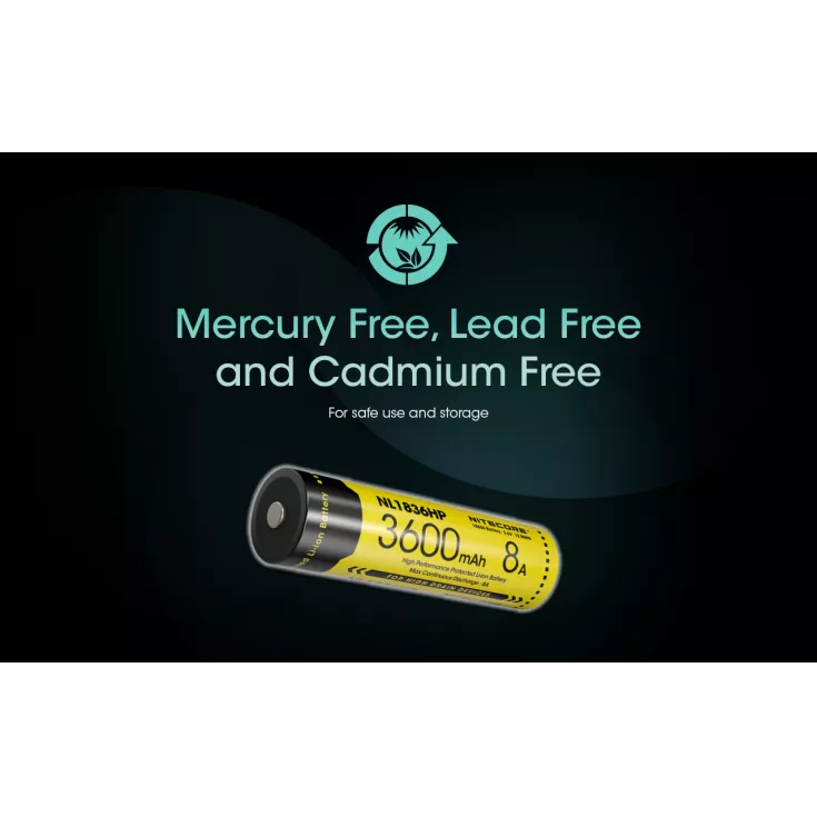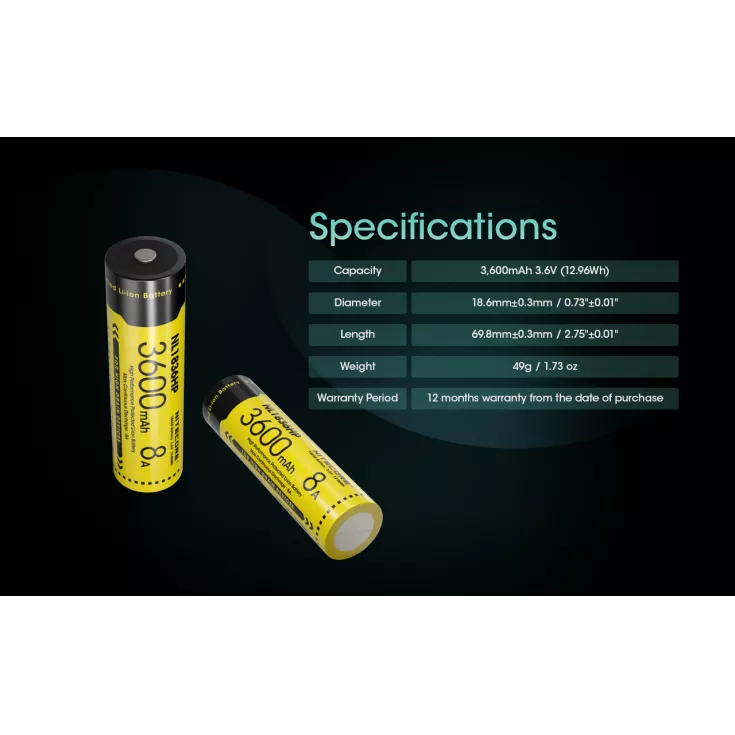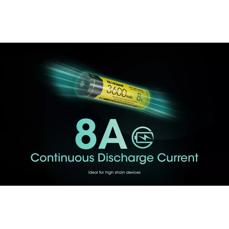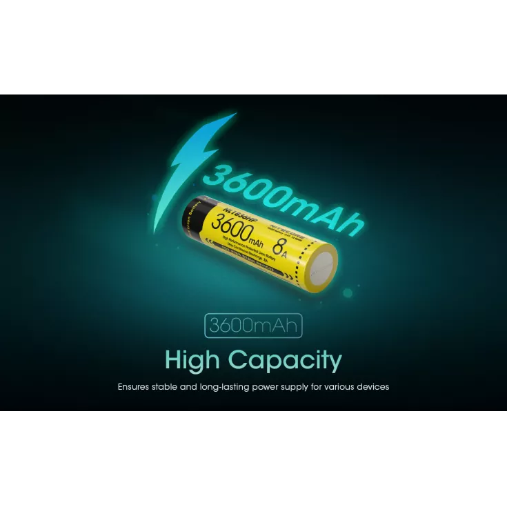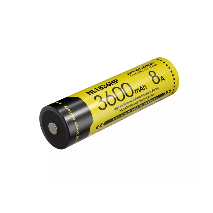The Nitecore NL1836HP is a high performance protected rechargeable Li-ion battery offering 500 full charging cycles.