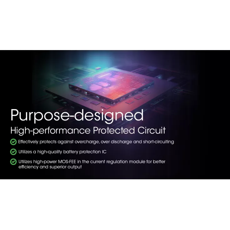 - Protection against overcharge, over discharge and short-circuiting