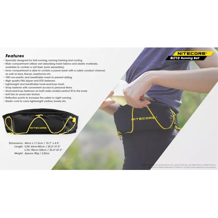 The Nitecore BLT10 is a lightweight and breatheable running belt made from 70D non-elastic mesh, creating an anti-slip belt that fits perfectly to your body.