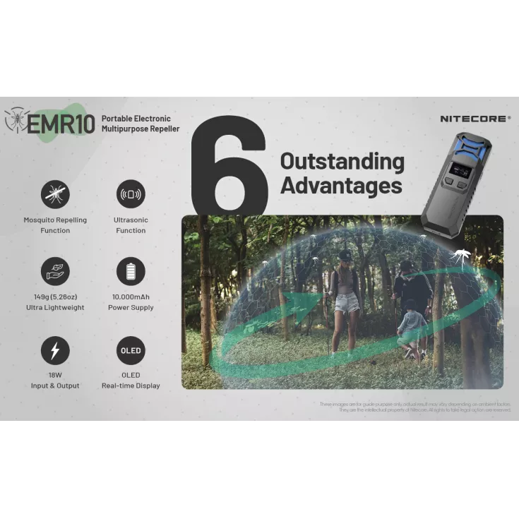 The Nitecore EMR10 portable electronic multipurpose repeller is ideal for keeping away mosquitoes and other pests. Powered by 2 x 21700 li-ion batteries, the device is easily rechargeable via USB-C (charging cable included) and can be used as a power supply to charge your smartphone.