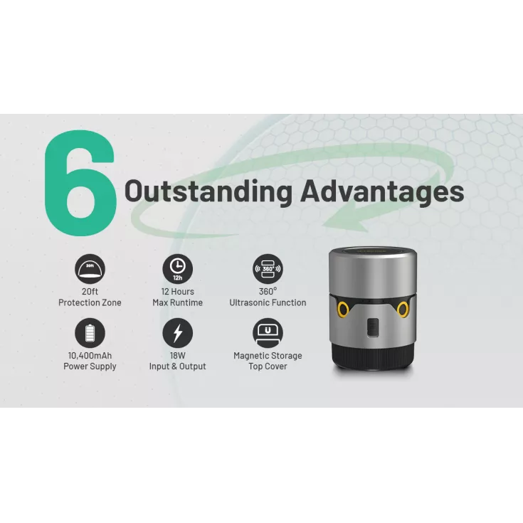 The device has 4 ultrasonic speakers with 40Hz ultrasound frequency which can be activated at the same time to repel other pests such as insects, mice, snakes and cockroaches.