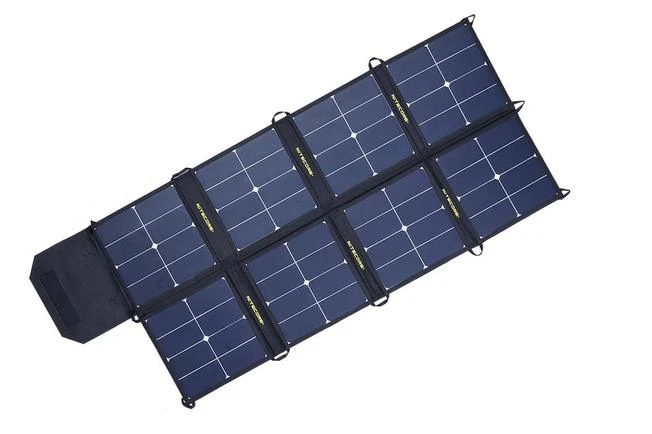 The Nirecore FSP100 is a foldable solar panel for car trips or as an emergency power supply. It is comprised of 8 solar panels with a cell efficiency of 24%, which is very high for this type of mobile solar panels. The FSP100 has a maximum output of 100W. Of course the output depends on a number of factors, like sunlight and temperature. With the FSP100 you can charge your devices via a DC connection, USB-C port or two USB-A ports.