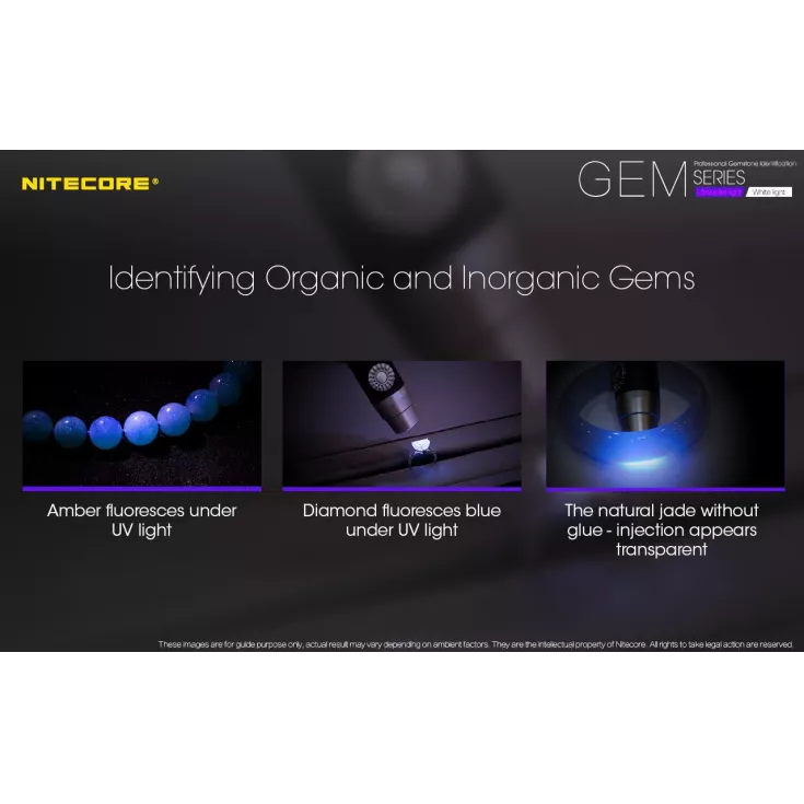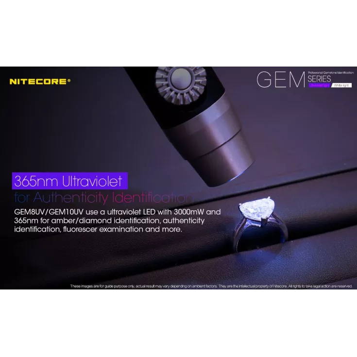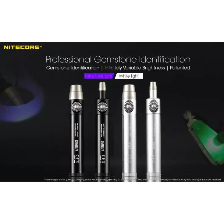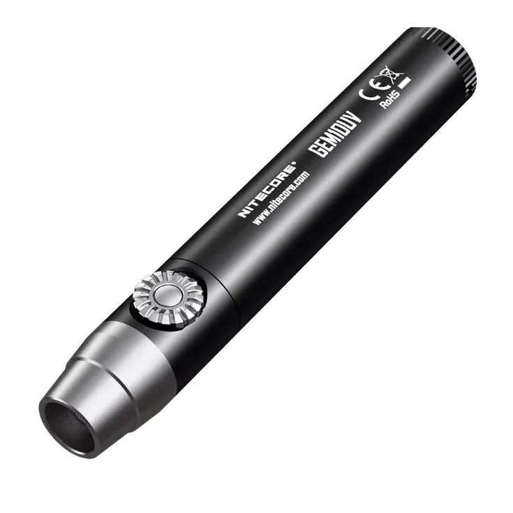 The Nitecore GEM10 UVÂ features a 3000mW, 365nm ultraviolet light and is powered by either 1 x 18650 or 2 x CR123 batteries.