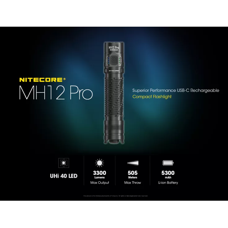 Despite its compact dimensions the MH12 Pro has a range of up to 505 meters with a maximum output of 3300 lumens.