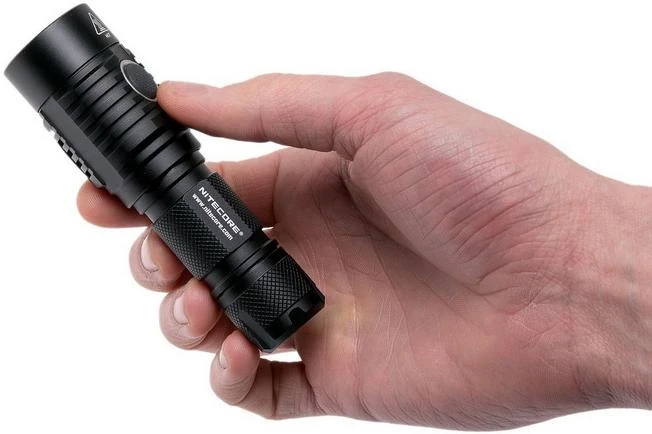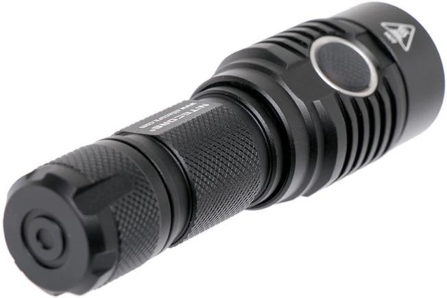 The NiteCore MH23 is a very small EDC flashlight with a maximum output of 1800 lumens and a length of only 11.2 cm. The two-stage side-switch is similar to a camera. By pressing it halfway you switch between the positions, pressing it further will switch it on and off. This switch also features a battery indicator that lets you see the status of your battery.