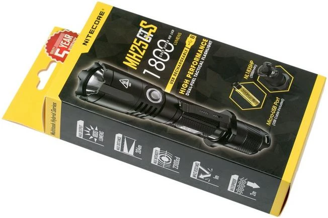 The Nitecore MH25GTS is a rechargeable flashlight with an especially powerful beam. It’s an ideal torch for law enforcement and for hunting as it illuminates objects from a great distance – up to 304 metres! The Nitecore MH25GTS has a maximum light output of 1800 lumens.