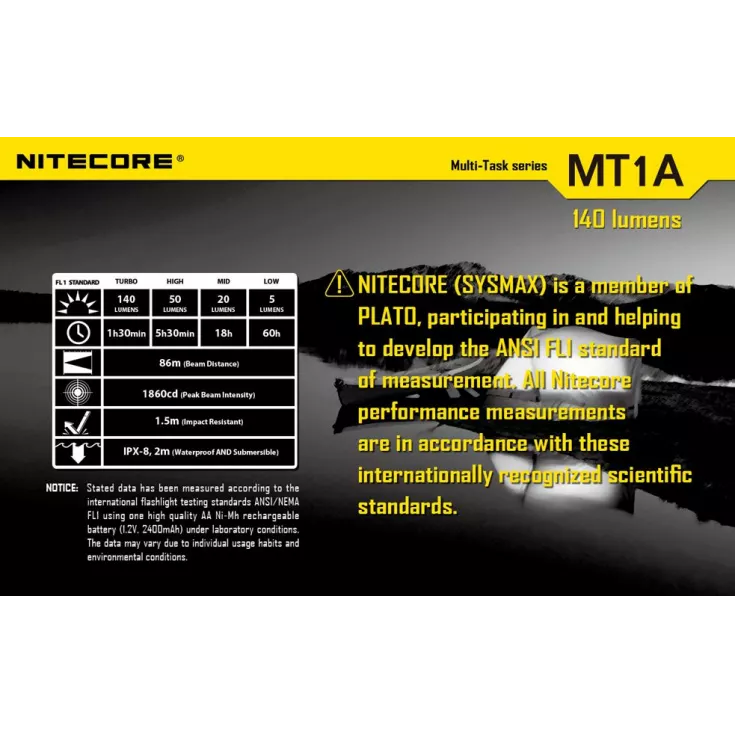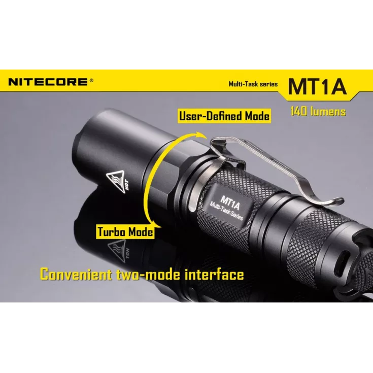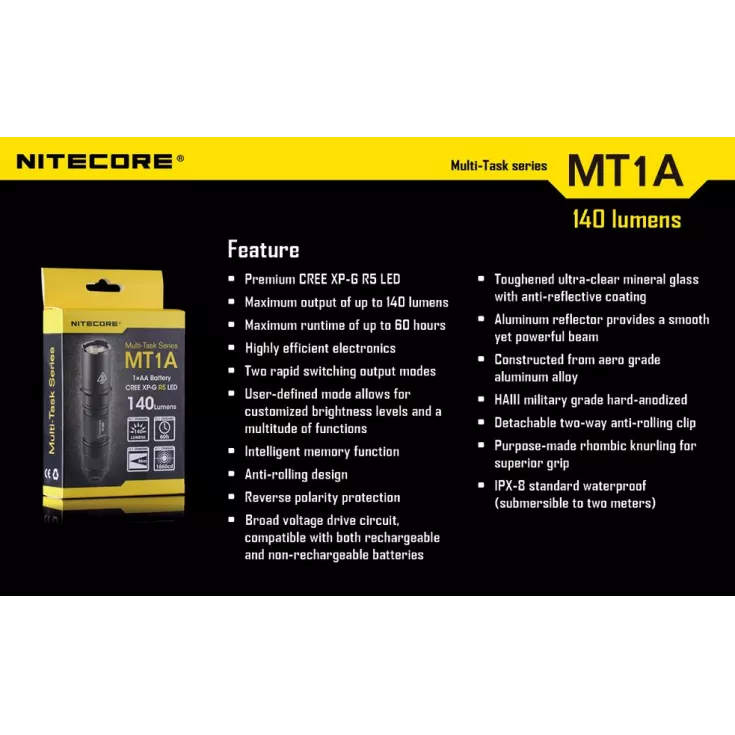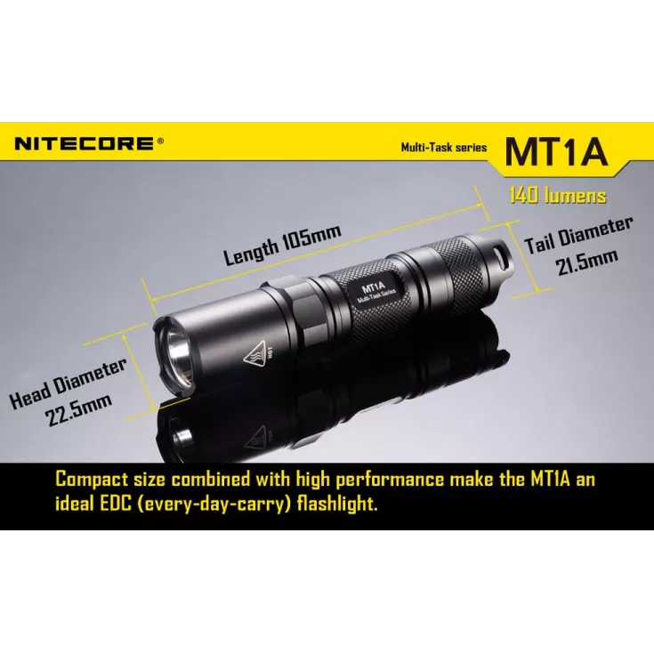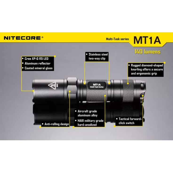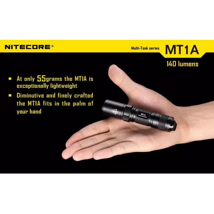 The Nitecore MT1A is powered by a single AA (alkaline or NiMH but not Li-ion) battery and features a Cree XP-G2 R5 LED with a maximum output of 180 lumens. A great value for money no-nonsense flashlight for every day use.