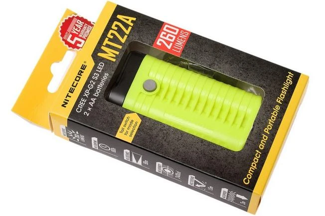 The NiteCore MT22A is a compact and lightweight flashlight with a maximum light output of 260 lumens. The MT22A has an innovative design. A flashlight that works with two AA batteries, optimized for EDC use.