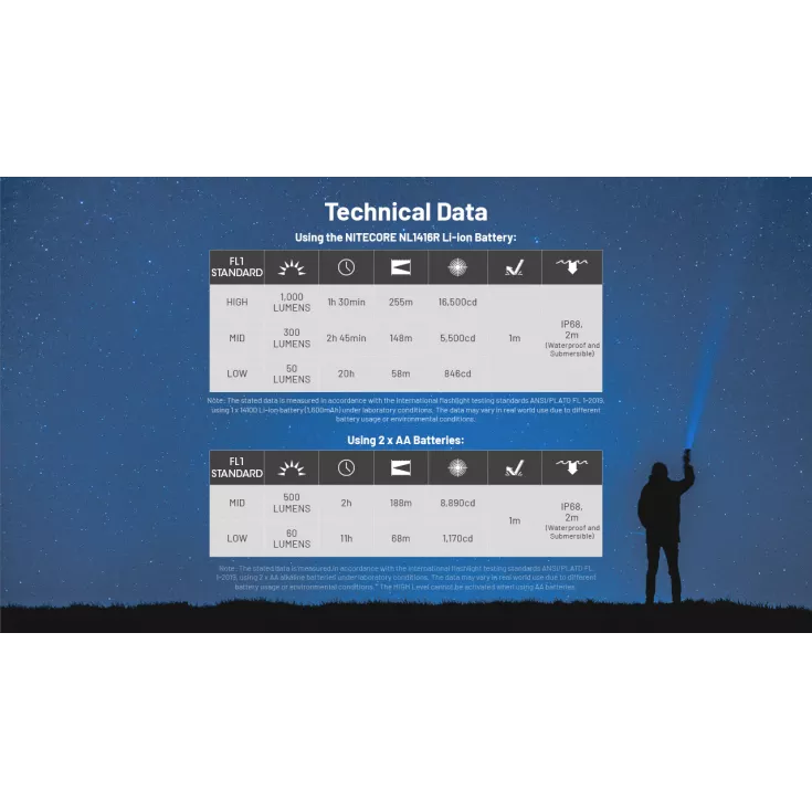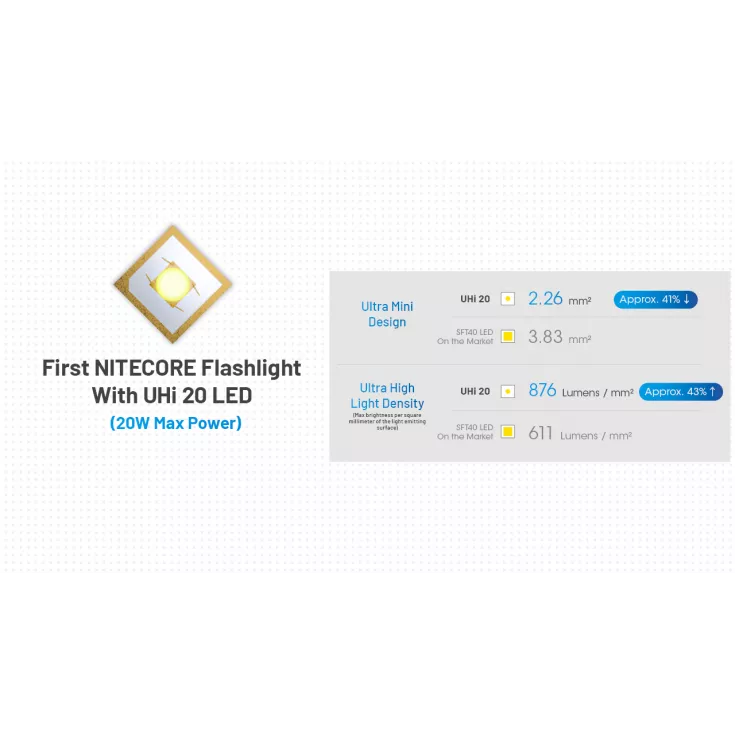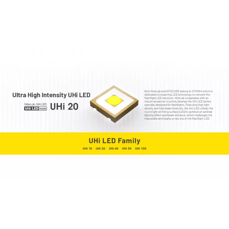 Featuring the NiteLab UHi 20 LED, which features high light density from a round light emitting surface that can light a range of up to 255 meters when using the Li-ion battery.