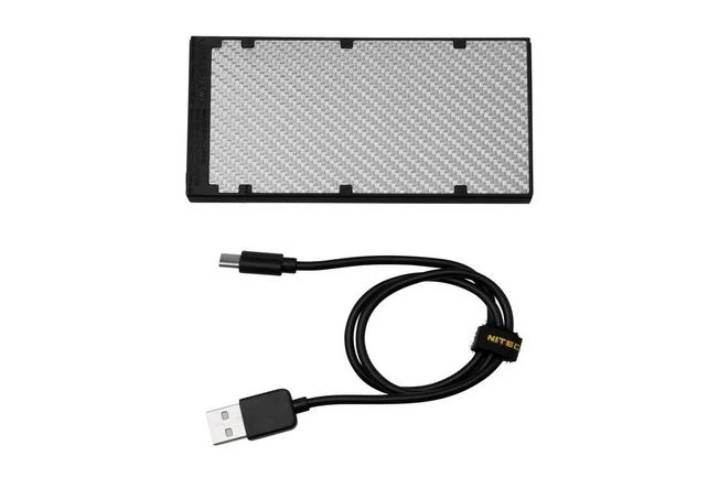 This Nitecore NB10000 power bank is a 154-gram power bank with a capacity of no less than 10,000 mAh. It was designed for trail running, but also perfect for light-weight backpacking or longer trips. The frame is made from polymer solidified with carbon fibres. This material offers a good balance between a low weight and a strong frame.