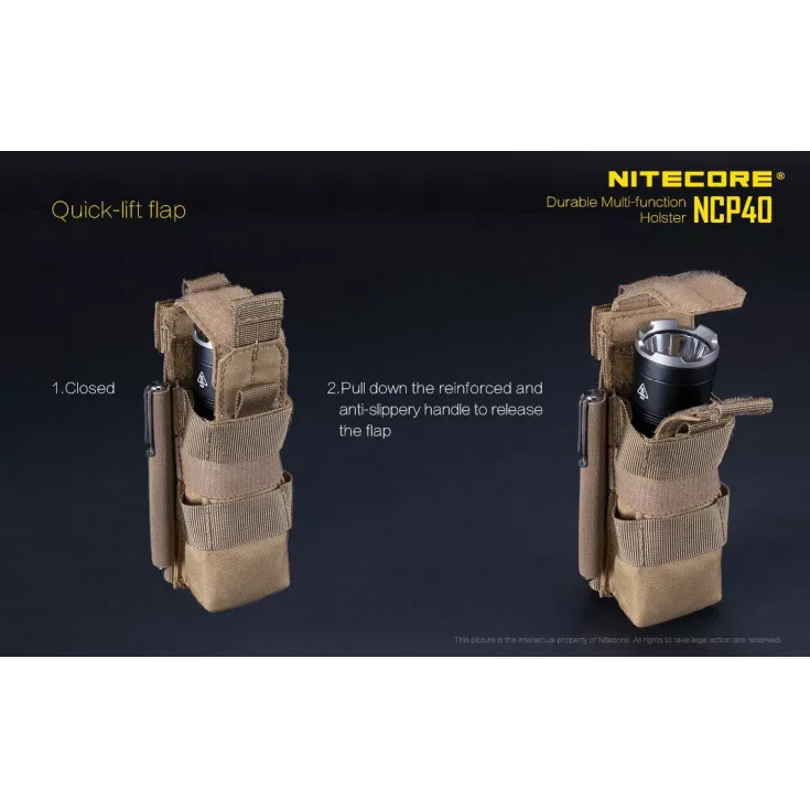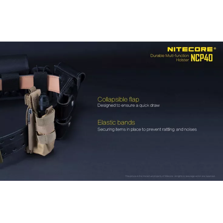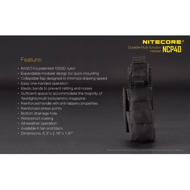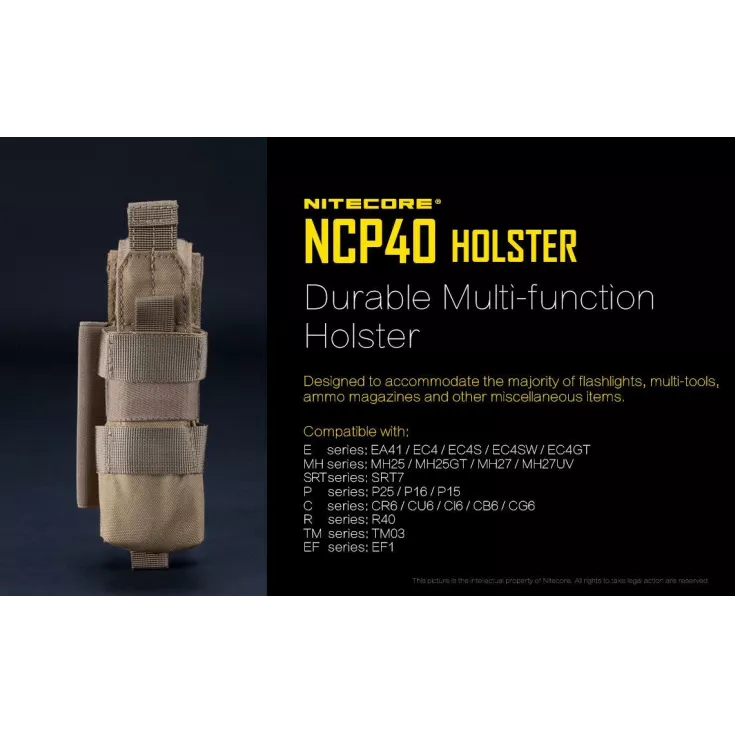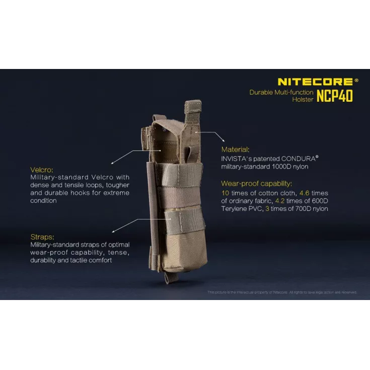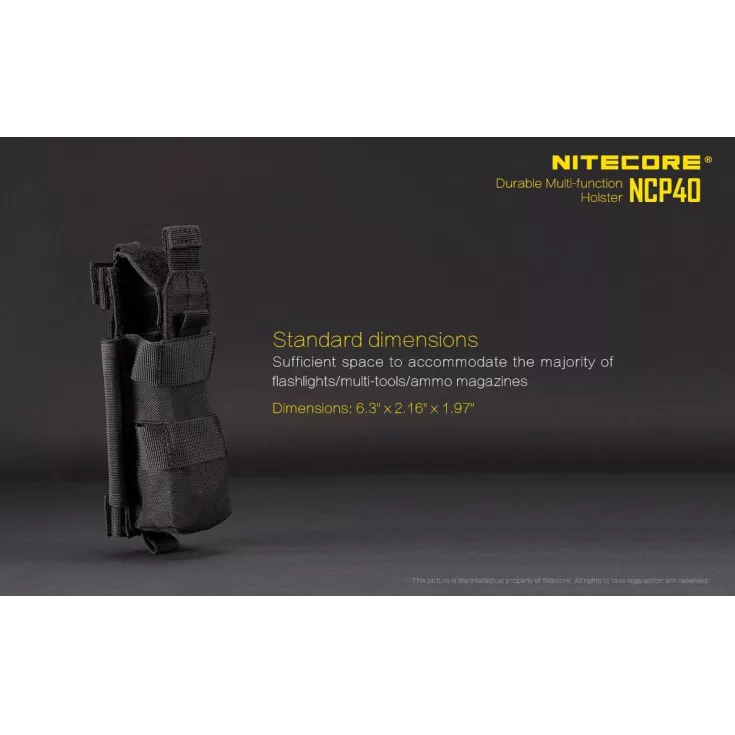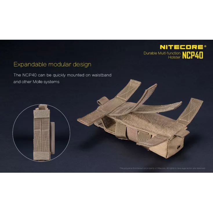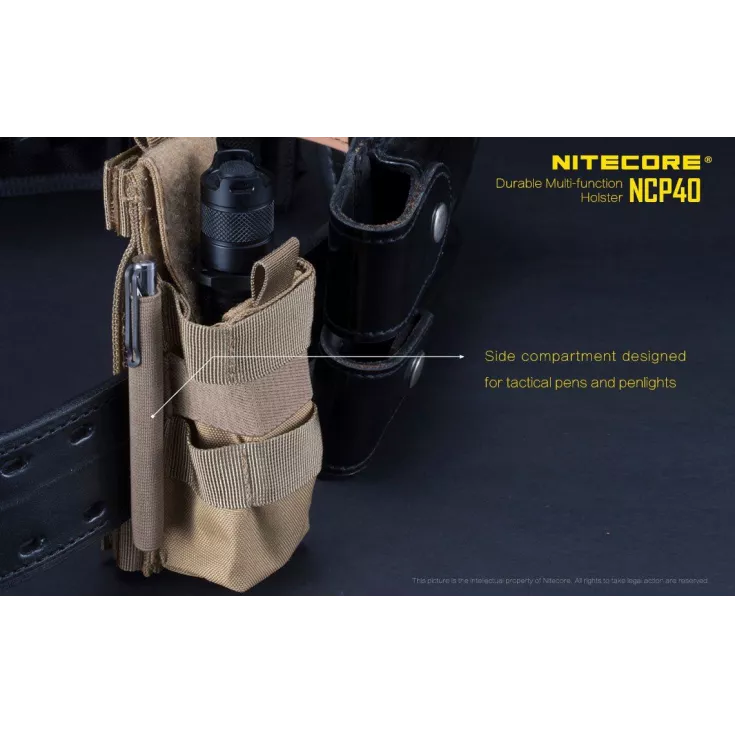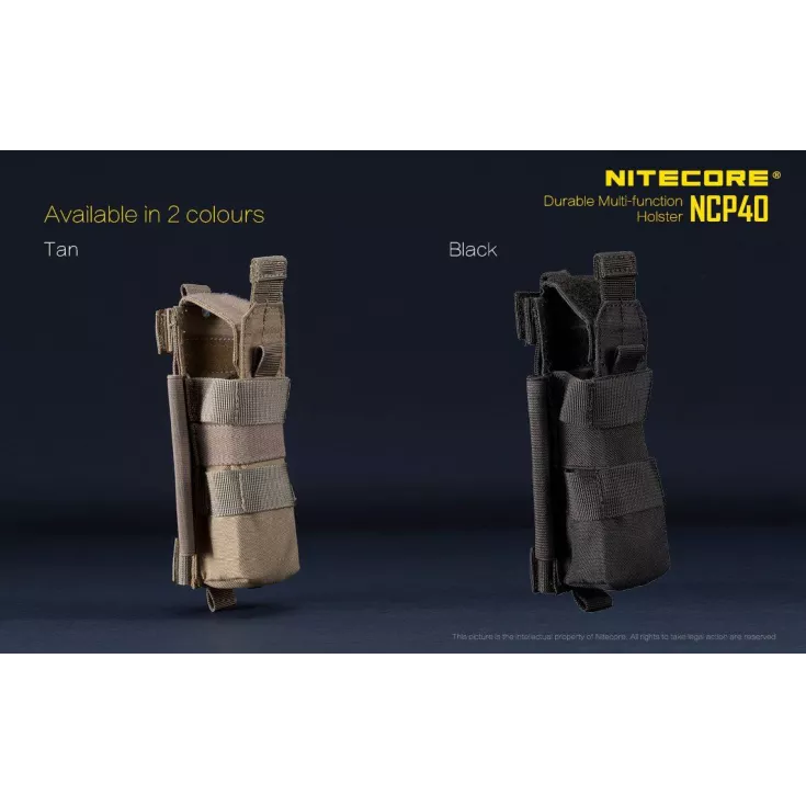The Nitecore NCP40 holster is made from durable, military grade, 1000D nylon which can withstand harsh conditions. Ideal to store and carry a large variety of flashlights, multi-tools and other personal effects, the holster is lightweight and easy to strap to a belt or waistband due to its modular design.