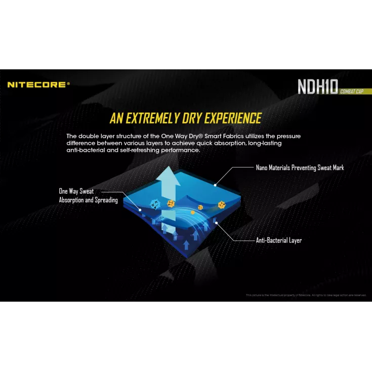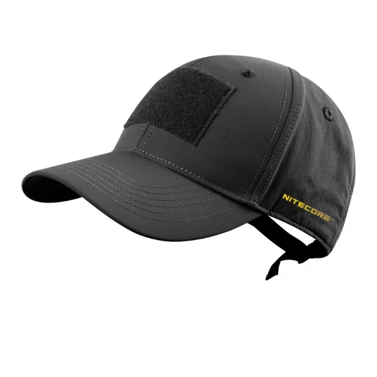 The Nitecore NDH10 is an adjustable, tactical black cap with a section at the front and back for customising with patches.