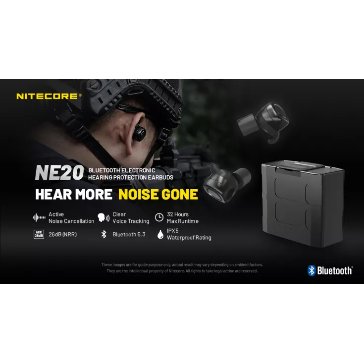 The Nitecore NE20 Electronic Bluetooth Earbuds provide noise cancelling and clear voice tracking. Â