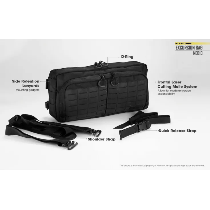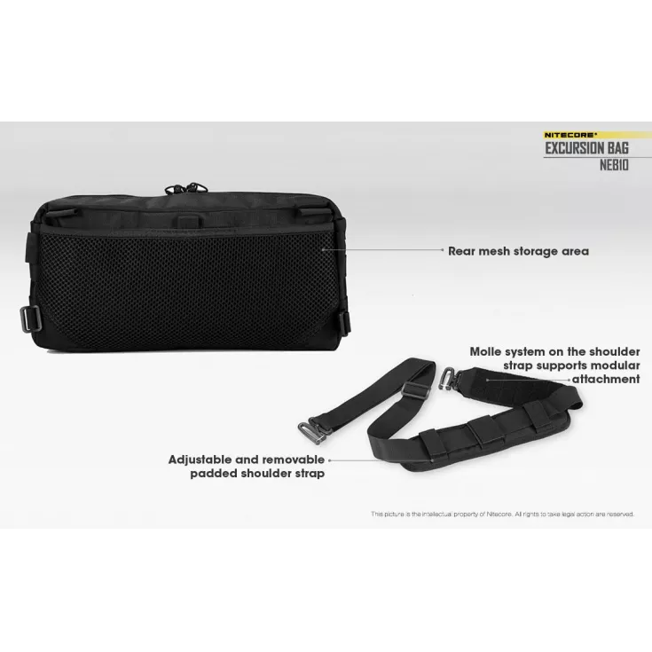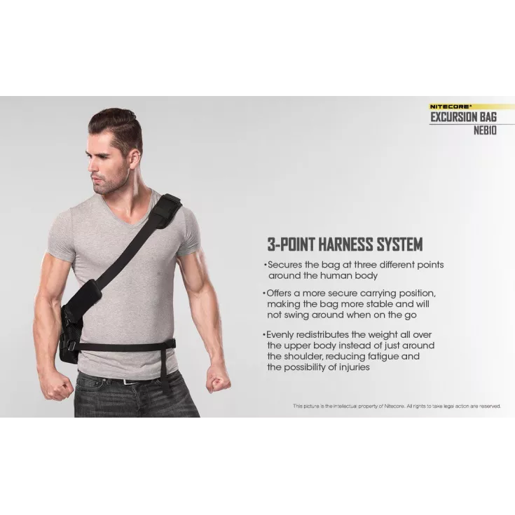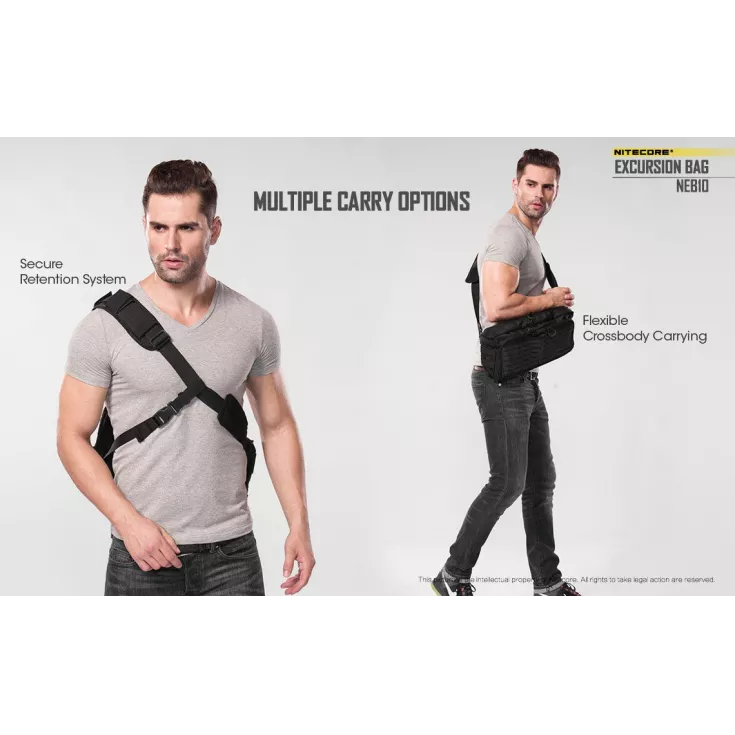 The Nitecore NEB10 Excursion Bag has been designed as a day pack with a choice of carrying options. Supplied with removable shoulder strap with adjustable shoulder pad and an additional quick release strap for a more secure way of carrying, that will not swing around the body and reduces  strain on the shoulder.