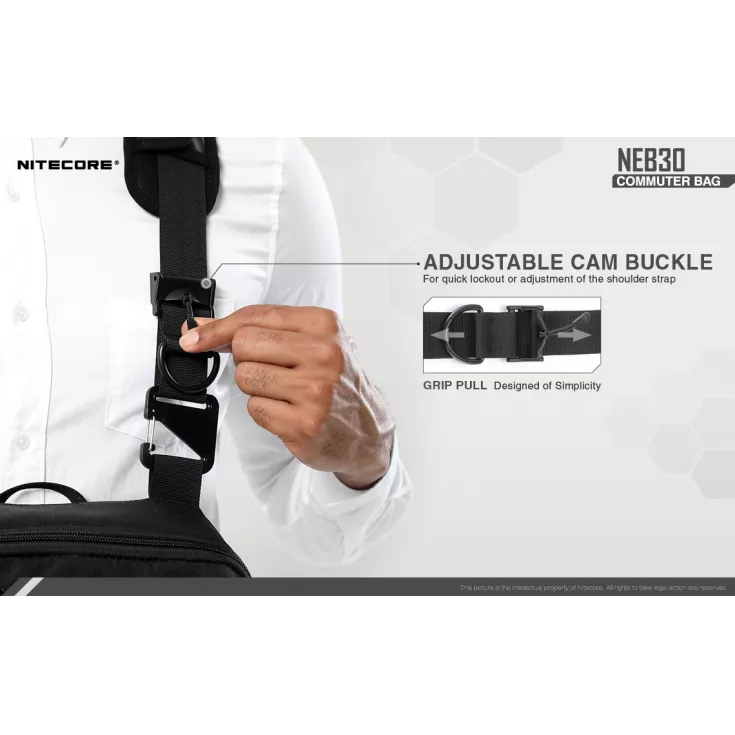 Made from high quality, 600D Oxford fabric, the Nitecore NEB30 is wearproof, water and dirt resistant and lightweight without compromising on strength and durability. To alter the length of the strap, the bag features a cam buckle for quick and simple lockout or adjustment.