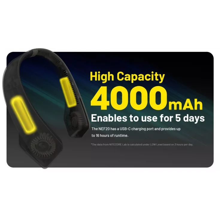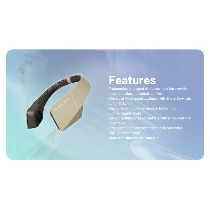 The Nitecore NEF20 portable, bladeless neck fan has a clean lined design offering comfort whilst keeping cool during outdoor activities.