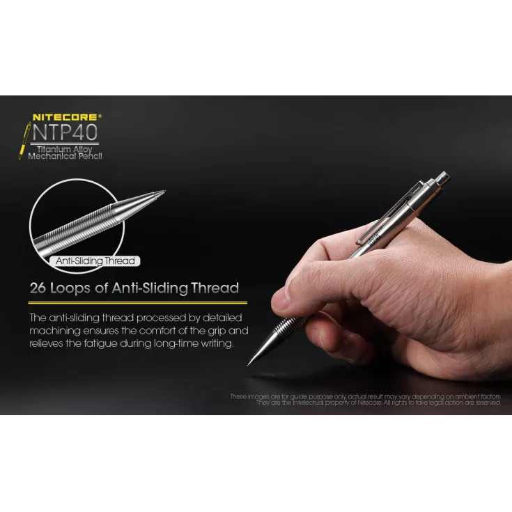 The Nitecore NTP40 is the first titanium pencil, following the success of Nitecore’s tactical pens, such as the NTP21 and NTP30. The ideal instrument for sketching and writing, the pencil gives a smooth and clear output suitable for a range of purposes.