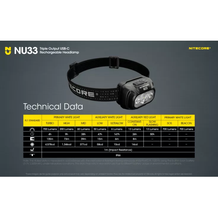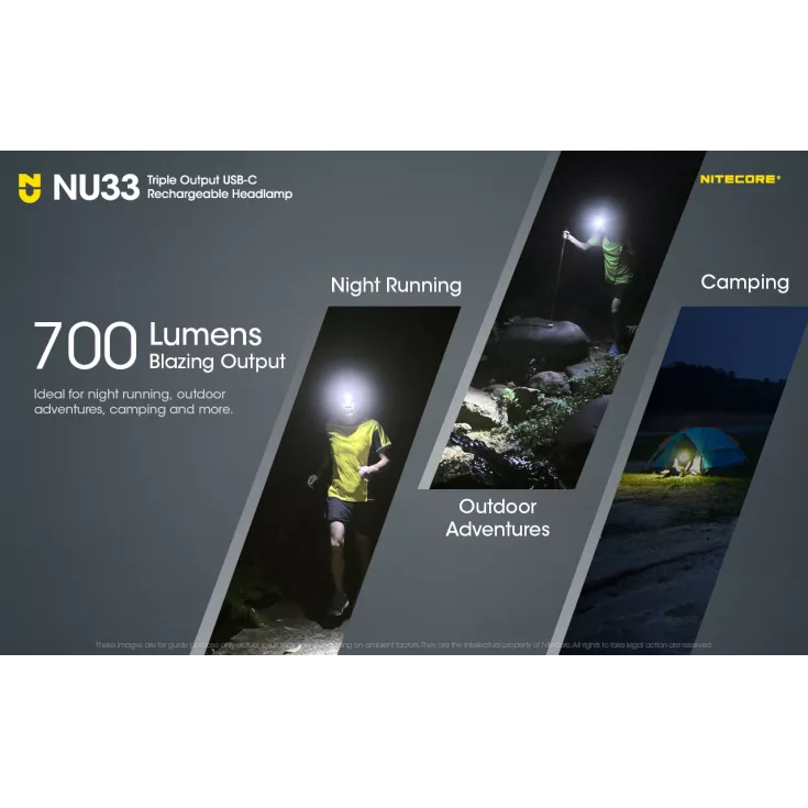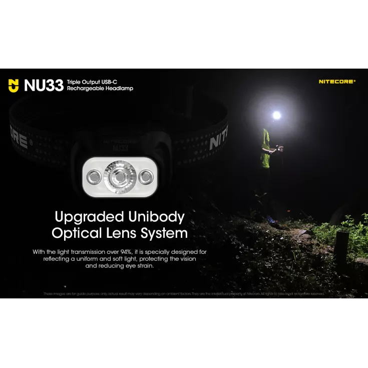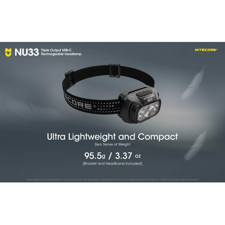 The headtorch is ultralight and compact, weighing just 95.5g. It has a durable and rugged construction, including the front housing which is made from aluminium, providing high efficiency heat dissipation and ideal for outdoor environments. The NU33 headtorch is perfect for night running, outdoor adventures and camping, plus lots more!