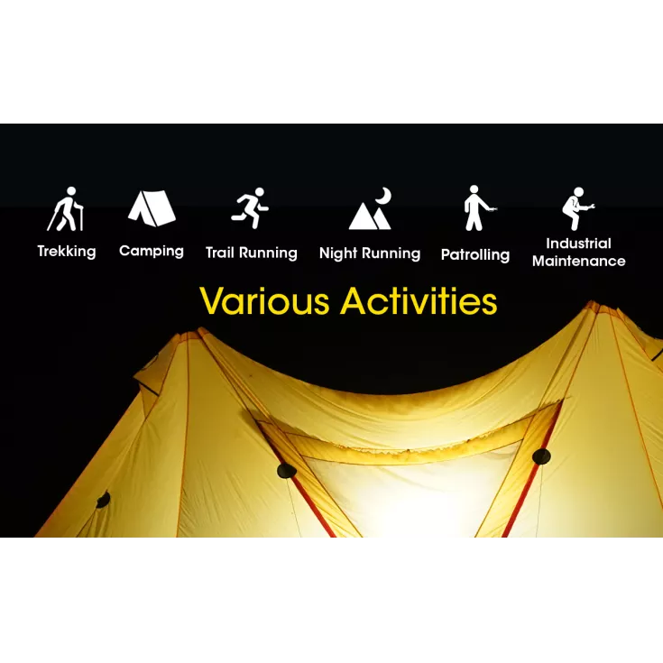 The headtorch also features a near-centre gravity bracket. This design allows for small rotation torque and short displacement when adjusting the headlamp. The bracket is adjustable to 72 degrees and can be adjusted upward quickly, avoiding direct lighting if needed.