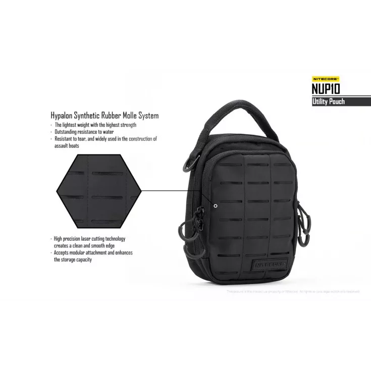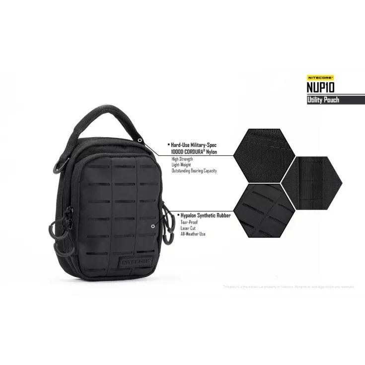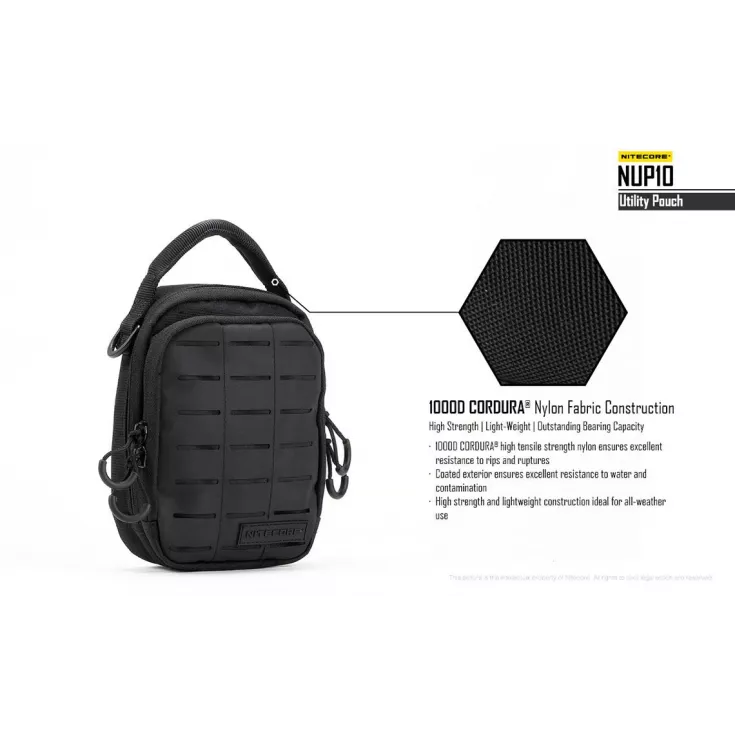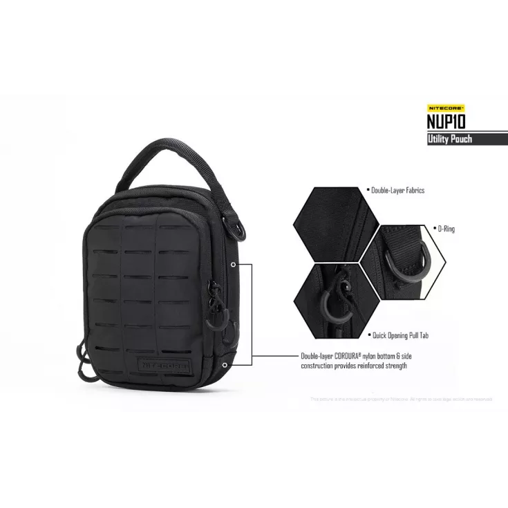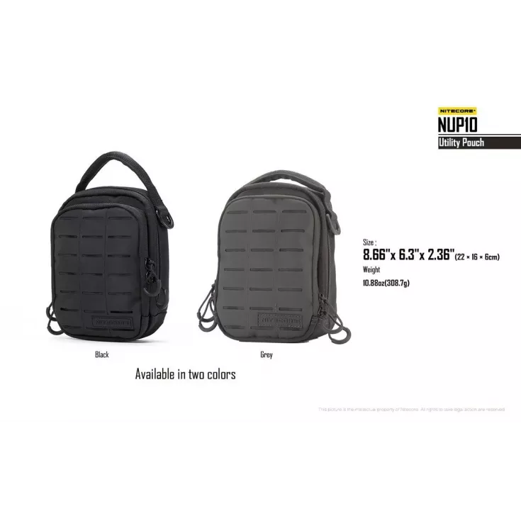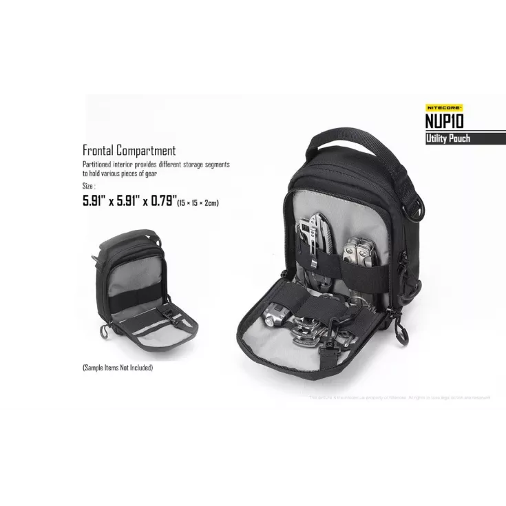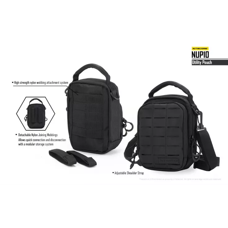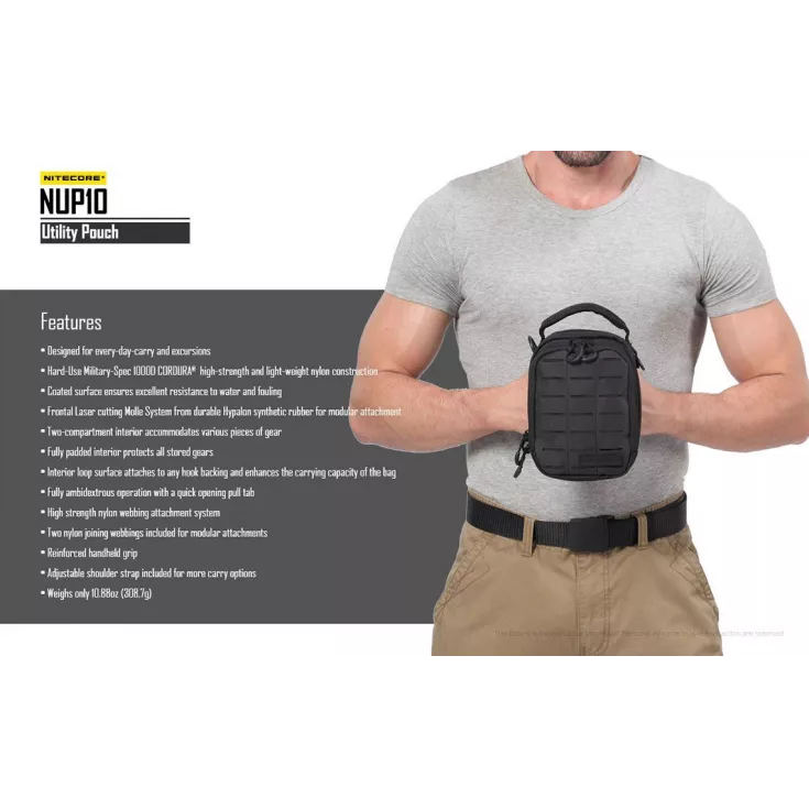 The Nitecore NUP10 is a two-compartment pouch that accomodates various pieces of gear in the innovative and varied storage systems.Â