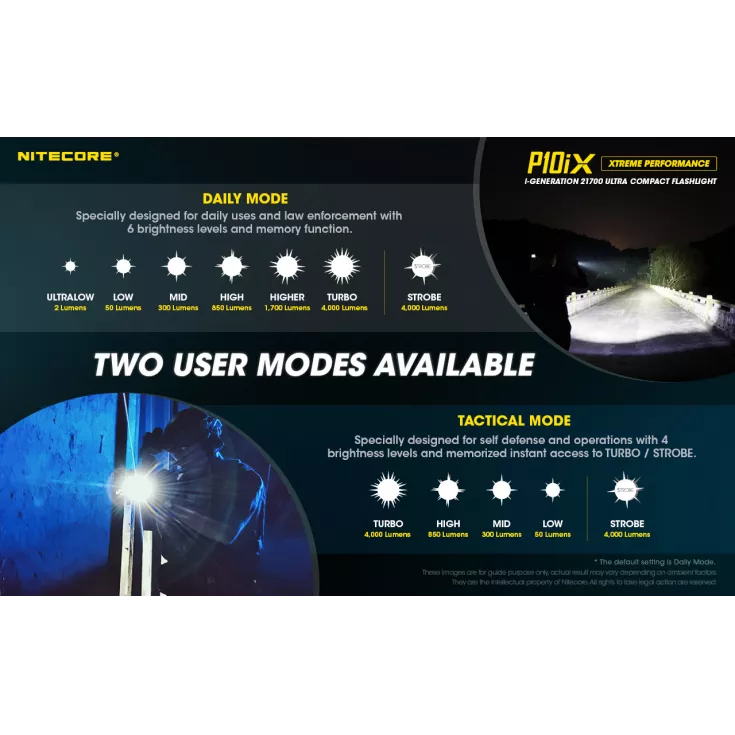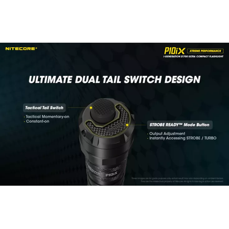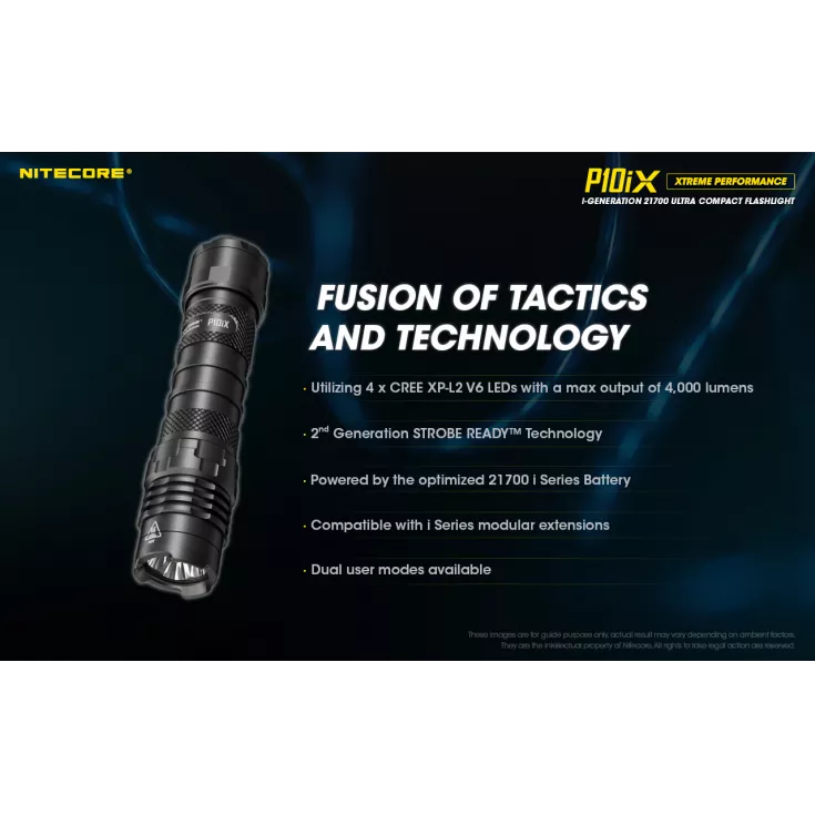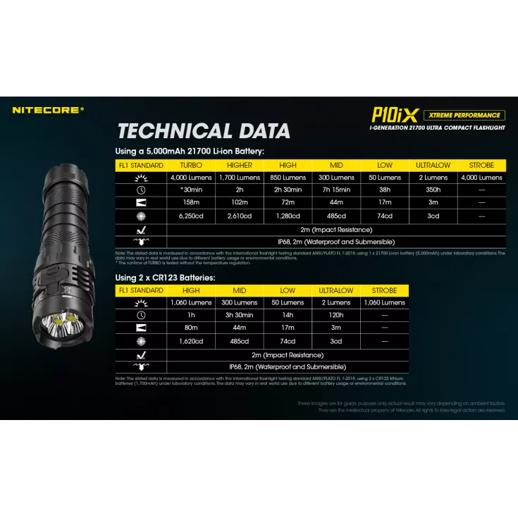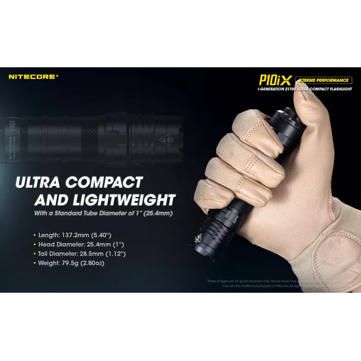 The P10iX includes Nitecore’s NTH10 tactical holster and a durable pocket clip. The P10iX is compatible with a range of additional accessories, including 25mm diffuser, traffic wand and filters, plus gun mounts, the RSW2i remote switch and the NTR10 tactical ring (available separately).