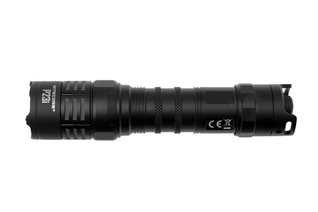 The Nitecore P23i rechargeable tactical flashlight is a powerful torch with a maximum light output of 3000 lumens and a range of 470 metres. It has a larger reach than the Nitecore P20 and is more compact than the Nitecore P30. It’s perfect for law enforcement and search operations. The special Strobe Ready technology ensures that the strobe function is always quickly accessible. This strobe won’t blink regularly, but changes at random. This has a disorienting effect on a potential attacker because they cannot adapt to the light.