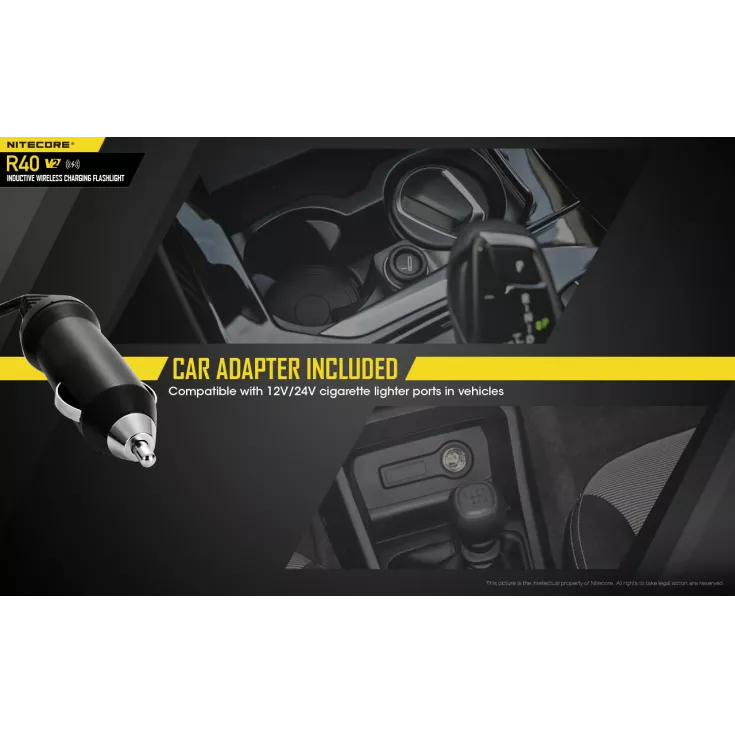 Ideal for law enforcement and search and rescue applications, the Nitecore R40 V2 can be charged using the included wall or desktop cradle. Alternatively, the flashlight can take its power using the car cigarette adapter or USB-C charging cable.
