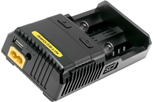The NiteCore Sc2 Superb Charger is a clever battery charger for almost all rechargeable batteries. Practical because it means that one charger will be enough. The Sc2 will automatically know if you added a Li-ion, IMR, Ni-MH or Ni-CD battery in the charger and will adjust the current accordingly. With the integrated screen you can follow the charging process. The charger will automatically turn itself off if the batteries are full to prevent overcharging.