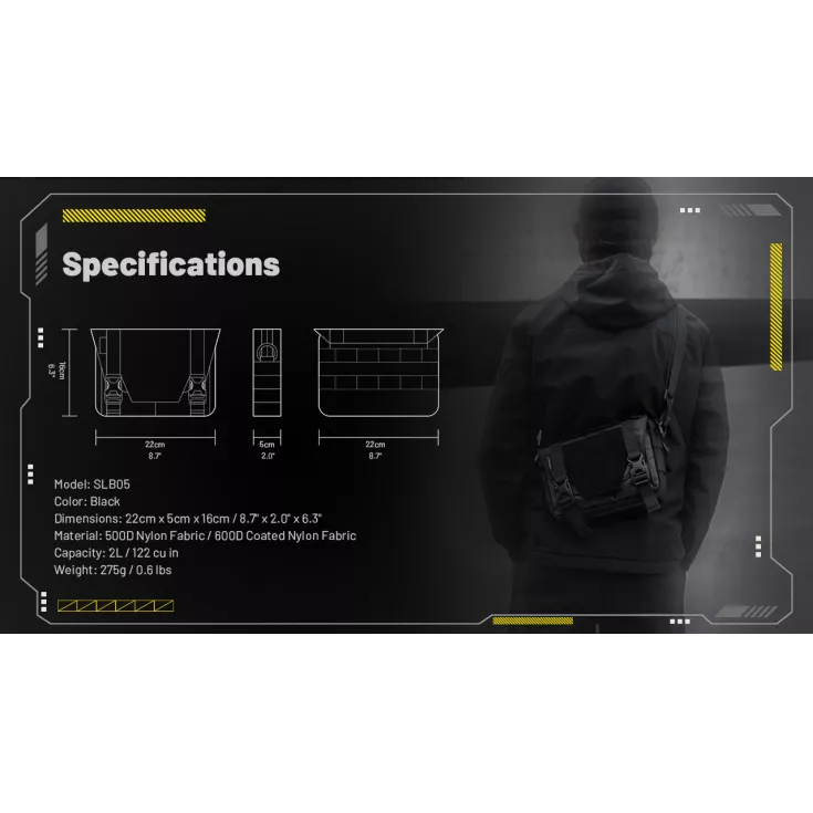 Stylish, yet durable, the SLB05 is a perfect everyday commuting bag made from high quality nylon fabric. It can be worn as a sling bag, handbag or utility pouch. Â