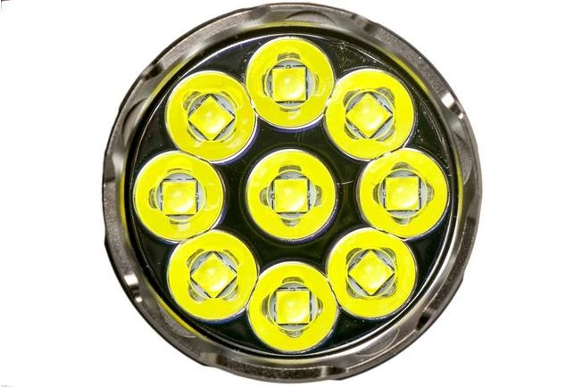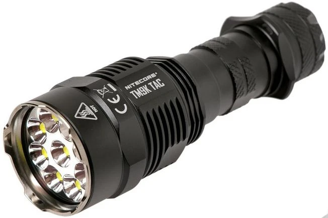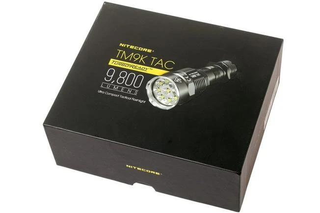 The Niteccore TM9K TAC is a powerful tactical flashlight. The nine LED lights in the head provide you with a beam of up to 9800 lumens. It illuminates everything that comes your way within 280 metres. This hulk is great for emergency services, security personnel and for search and rescue operations.