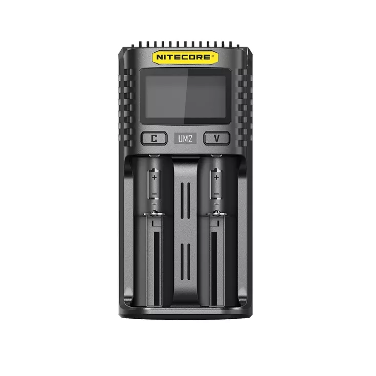 The Nitecore UM2 charger has a maximum output of 3,000mA (1,500mA per slot), when used with a quick charge power source (9V/2A). At 1,500mA it takes approximately 2 hours to fully charge a 3500mAh 18650 battery. Each Nitecore UM2 is supplied with the USB lead only, so the quick charge power source is required to be purchased separately.
